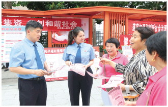 為加大力度打擊和處置非法集資,河南省洛陽(yáng)市近日開展以“守住錢袋子·護(hù)好幸福家”為主題的宣傳活動(dòng)。汝陽(yáng)縣人民檢察院組織干警在社區(qū)體育廣場(chǎng)針對(duì)養(yǎng)老、涉農(nóng)、解債等領(lǐng)域開展防范非法集資宣傳,從源頭上遏制非法集資發(fā)生。圖為汝陽(yáng)縣檢察院干警在社區(qū)體育廣場(chǎng)向群眾講解防范非法集資知識(shí)。