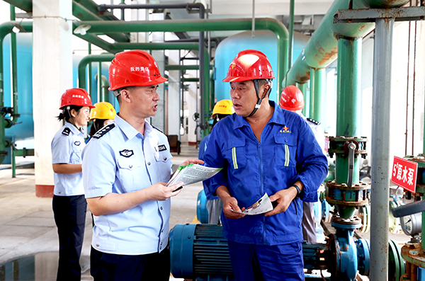 近日,河北省東光縣公安局開展以“綠水青山就是金山銀山”為主題的普法宣傳活動(dòng)。圖為民警走進(jìn)綠色化工企業(yè)進(jìn)行普法宣傳。