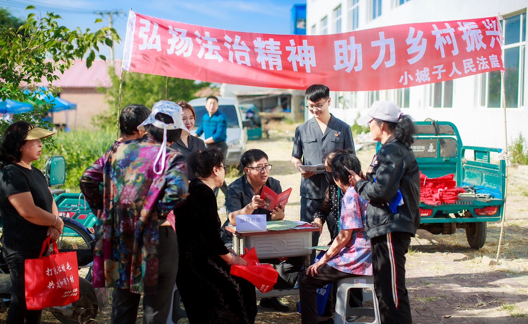 近日,吉林省梨樹縣人民法院小城子法庭在小城子鎮(zhèn)集市設立法律咨詢點,法官向趕集的群眾宣傳法律知識,提供法律服務。圖為法官為群眾解答法律問題?!?nbsp;