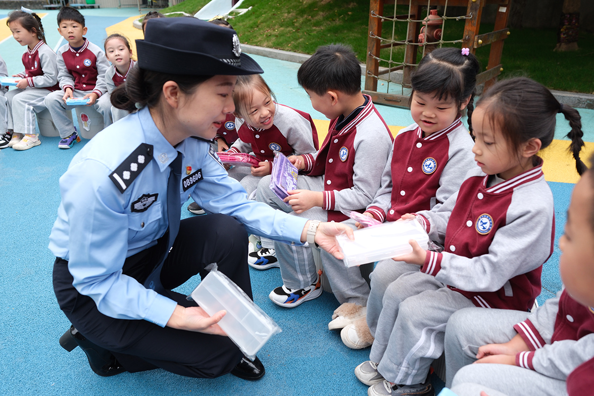 近日,杭州鐵路公安處嘉興站派出所民警組成愛路護(hù)路宣傳小分隊(duì),來到嘉興市第三幼兒園開展安全宣傳活動(dòng)。圖為民警向小朋友講解鐵路安全及乘車安全知識。 本報(bào)通訊員 賀瑞明 徐燁 攝