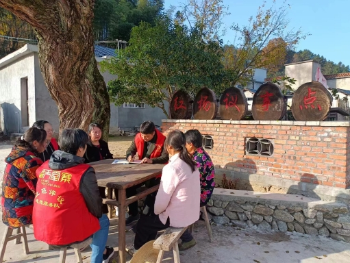 11月23日,在安徽省岳西縣馬石村“紅楊議事點(diǎn)”,村干部和調(diào)解員回訪糾紛當(dāng)事人。 王霞 攝