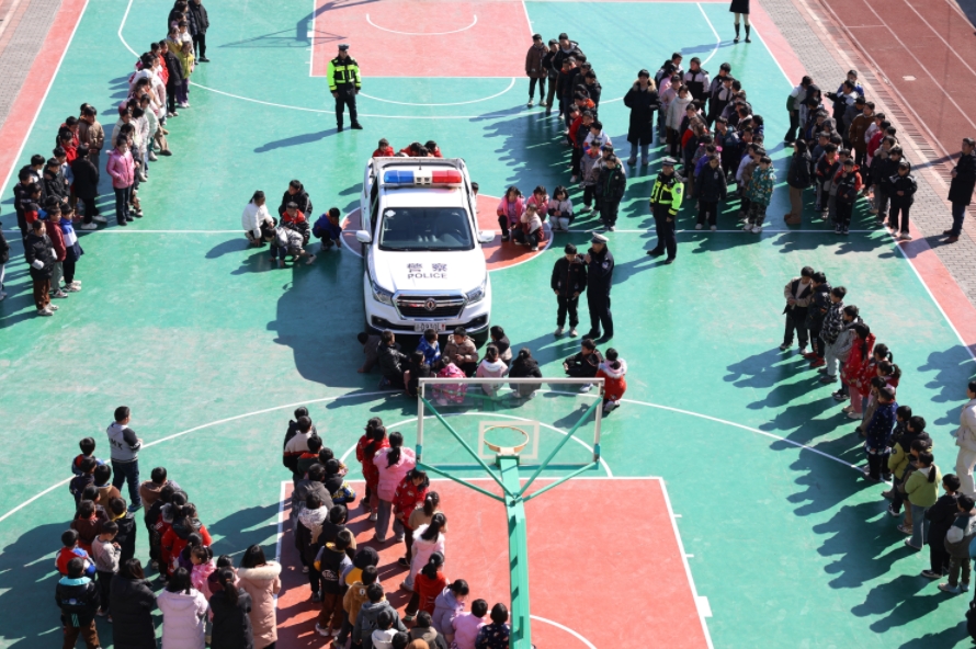 為進(jìn)一步筑牢寒假期間交通安全防線,江西省遂川縣公安局交警大隊(duì)近日組織民警走進(jìn)轄區(qū)中小學(xué)校,開展交通安全宣傳活動(dòng)。圖為1月10日,民警在遂川縣大汾鎮(zhèn)寨溪小學(xué)向?qū)W生講解機(jī)動(dòng)車駕駛盲區(qū)知識(shí)。