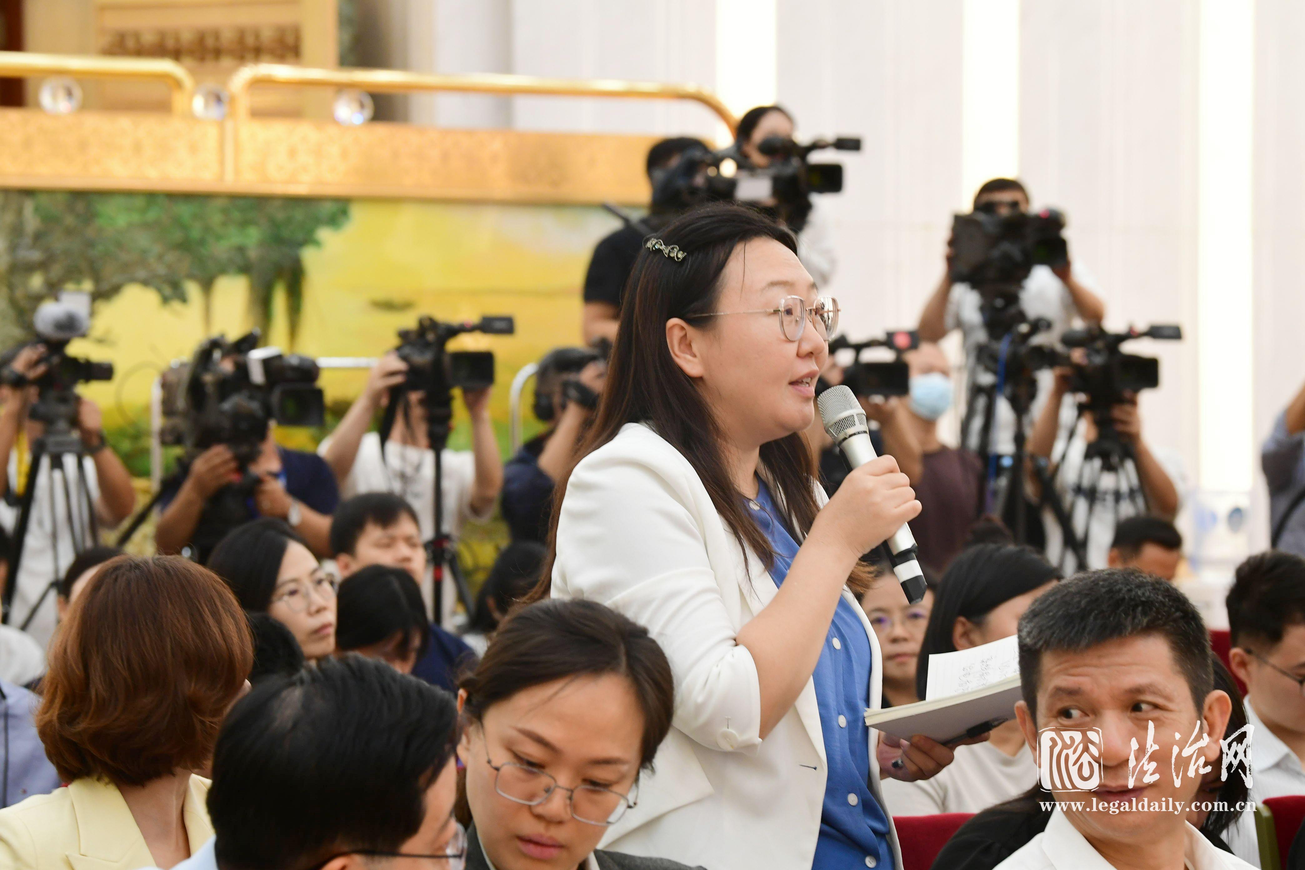 9月13日下午,全國人大常委會辦公廳舉行新聞發(fā)布會。圖為經(jīng)濟日報記者提問。張峻銘 攝