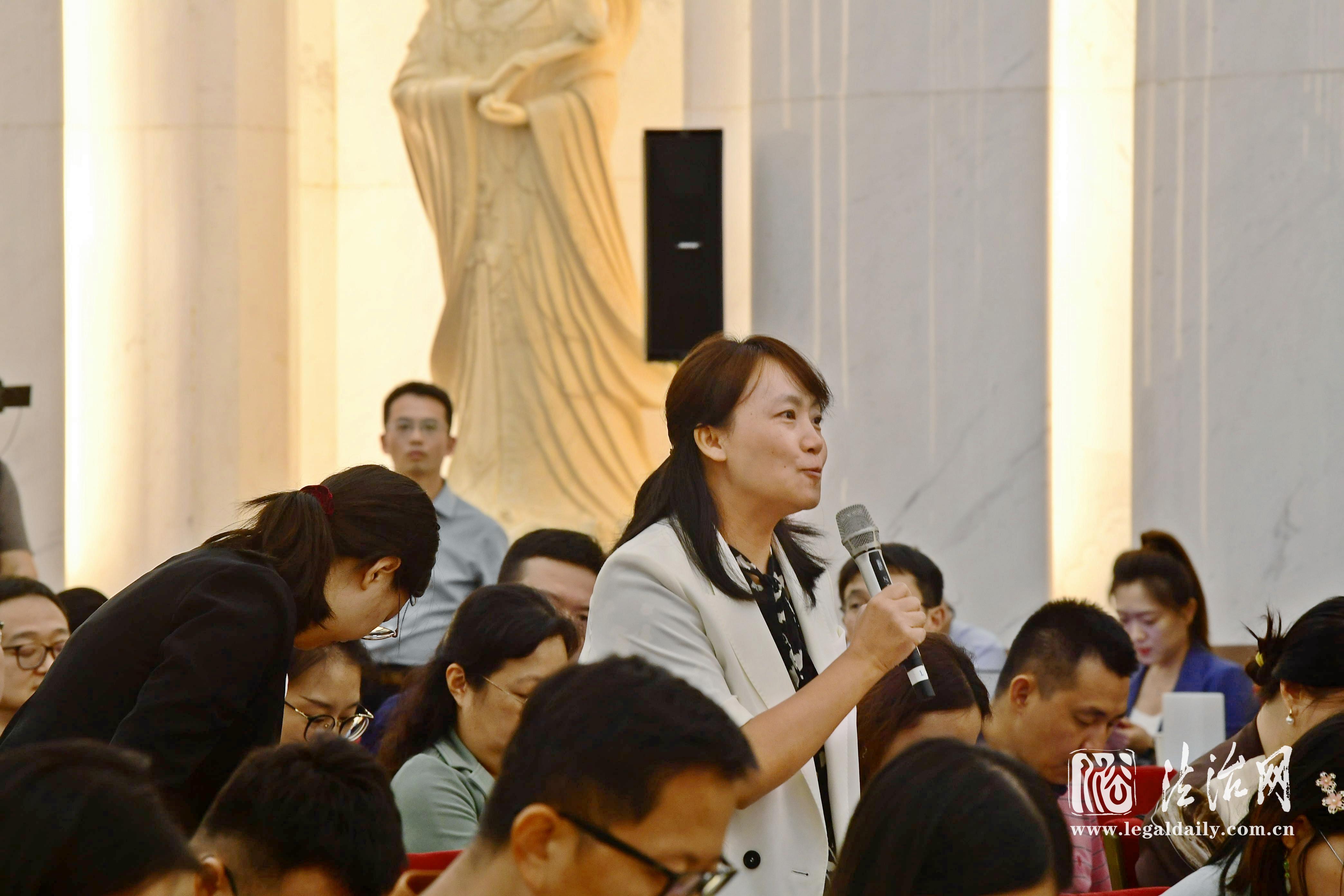 9月13日下午,全國人大常委會(huì)辦公廳舉行新聞發(fā)布會(huì)。圖為工人日?qǐng)?bào)記者提問。張峻銘 攝