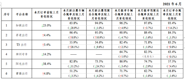 網(wǎng)約車監(jiān)管信息交互平臺(tái)發(fā)布2021年6月份網(wǎng)約車行業(yè)運(yùn)行基本情況