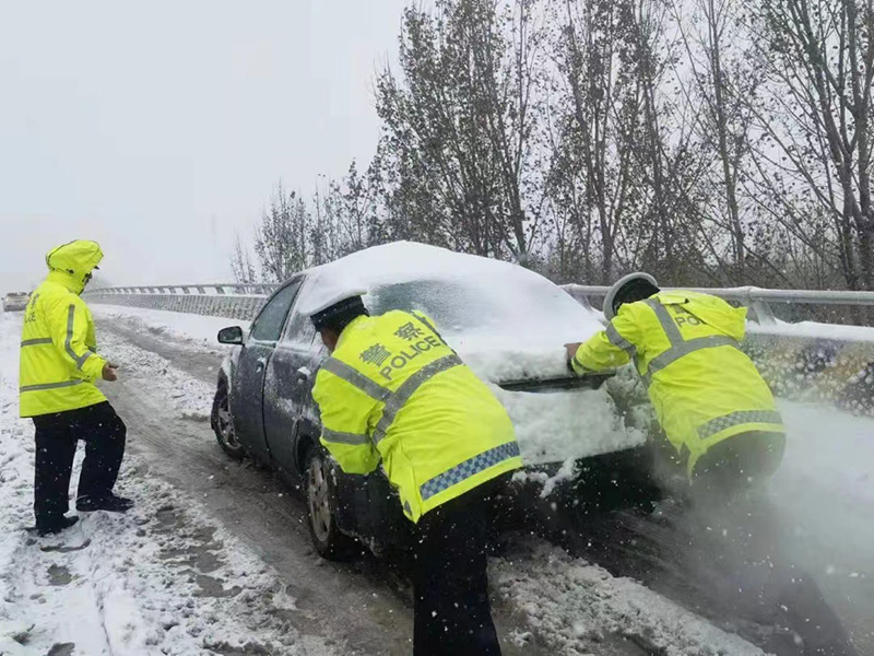 面對暴雪來襲,山東省濟(jì)南市公安局長清區(qū)分局多警聯(lián)動,巡警、交警和各派出所共同加大轄區(qū)治安交通巡防力度,通過在易發(fā)交通事故等重點(diǎn)路段采取定點(diǎn)執(zhí)勤和巡邏管控相結(jié)合的措施,幫助群眾解決上路期間發(fā)生的問題。11月7日上午10時(shí)30分,長清區(qū)交警大隊(duì)在大學(xué)城丁香路、紫薇路等重點(diǎn)路段執(zhí)勤中發(fā)現(xiàn)有拋錨車輛停在路中間,民警迅速前往救助,幫助過路受阻車輛及群眾,將車輛推至安全區(qū)域,并疏導(dǎo)交通、維持通行秩序。崮山派出所民警在國道104線巡邏時(shí)接到群眾求助,幫助遇困群眾車輛。歸德中隊(duì)交警幫助遇困車輛上的老人,將老人攙扶到中隊(duì)休息并送上熱水。