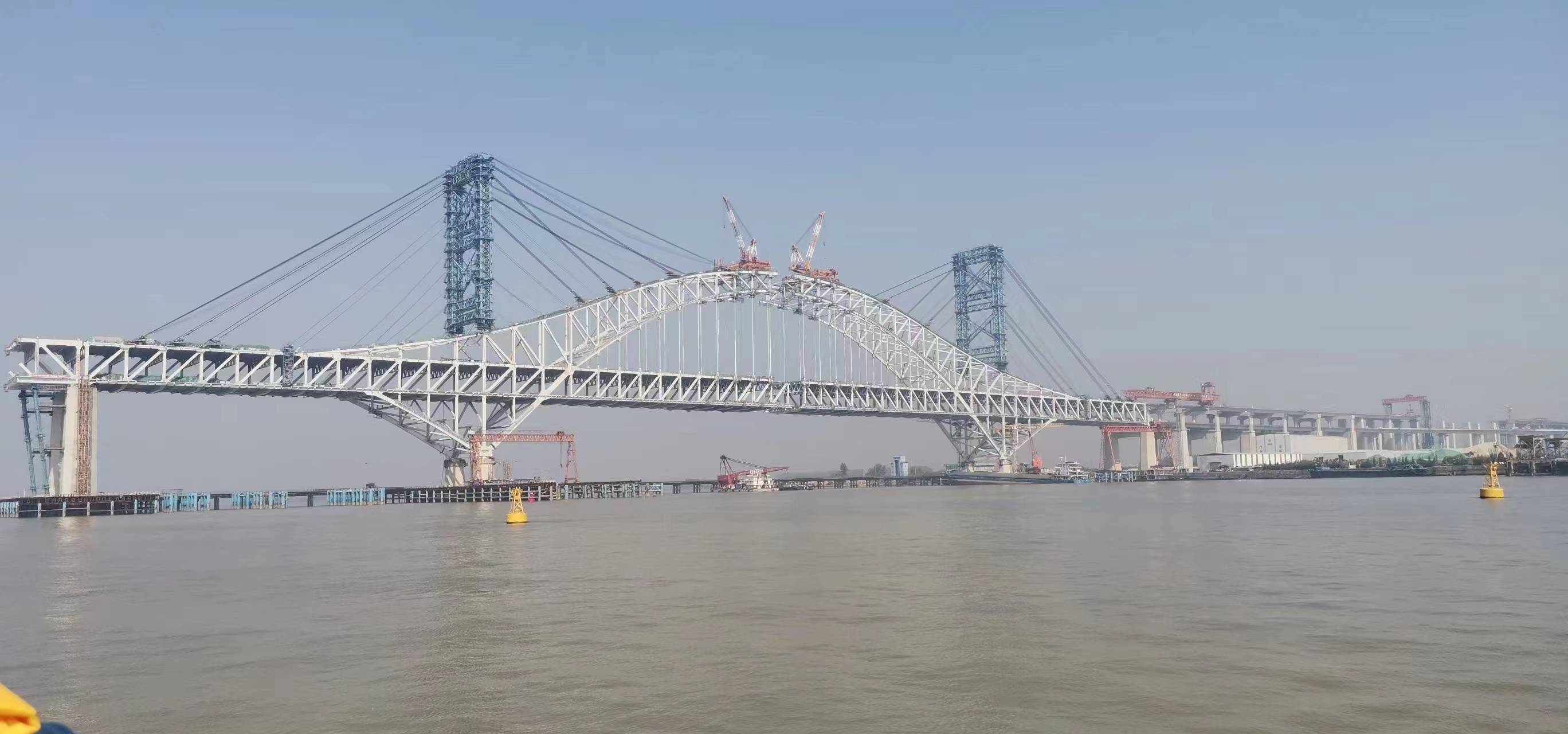 站在泰興市虹橋鎮(zhèn)的長江岸邊,放眼望去,江心高聳的鉆石型主塔直指藍天,兩側(cè)蛟龍般的鋼桁拱橋橫臥江面,這就是由江蘇省交通工程建設(shè)局建設(shè)、中交集團所屬中交二航局參建的常泰長江大橋。主跨長達1208米的主航道橋和兩側(cè)天星洲、錄安洲兩座專用航道橋連接貫通后,將成為長江上首座集高速公路、城際鐵路、一級公路“三位一體”的過江通道。大橋分為上下兩層,上層為雙向六車道高速公路,下層為兩線城際鐵路與普通公路并行。建成通車后,常州、泰州兩城間的交通將由原先的幾小時縮減至30分鐘,長江南北兩岸的人流和物流的便利性將大大加強。