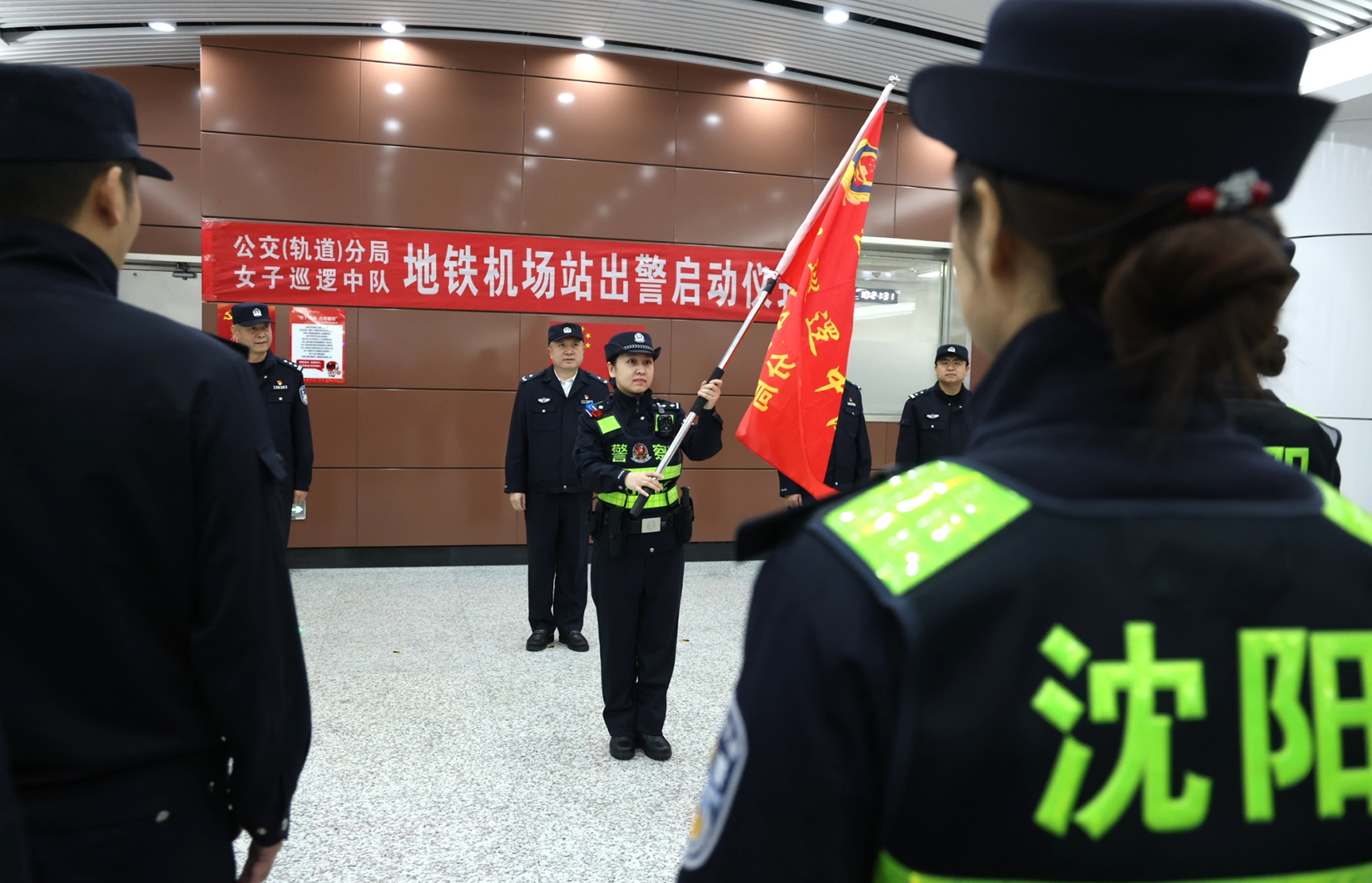 圖為11月21日,沈陽(yáng)市公安局公交(軌道)分局在地鐵桃仙機(jī)場(chǎng)站臺(tái)舉行女子巡邏中隊(duì)出警啟動(dòng)儀式。