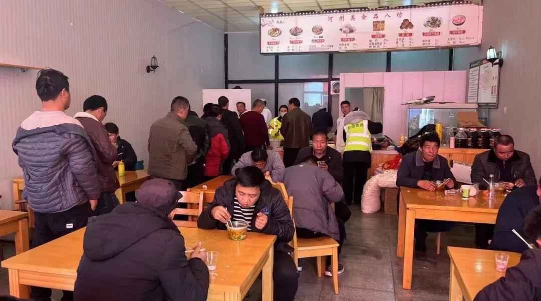 12月24日凌晨1點(diǎn)30分,在高速公路買家巷服務(wù)區(qū)愛心餐廳,從蘭州往積石山拉運(yùn)活動(dòng)板房的貨車司機(jī)馬師傅和其他司機(jī)們一同吃上了熱騰騰的免費(fèi)牛肉面。