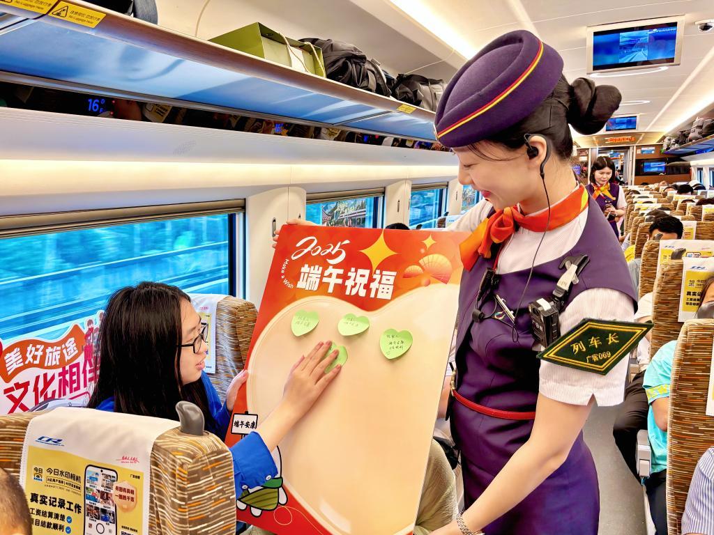 2025年端午假期,恰逢“我的鐵路風(fēng)景”主題宣傳第二季活動(dòng)火熱開展,鐵路部門在全國(guó)1000余個(gè)客運(yùn)站車組織啟動(dòng)“我的鐵路風(fēng)景:美好旅途 粽享端午”文化互動(dòng)活動(dòng),將傳統(tǒng)文化元素融入服務(wù)過(guò)程,讓中華優(yōu)秀傳統(tǒng)文化成為最美的風(fēng)景。