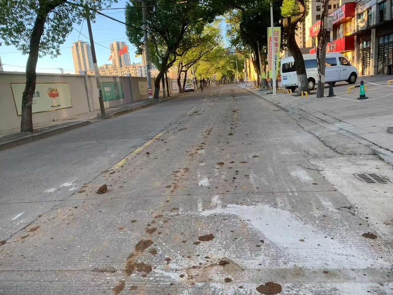 事發(fā)當(dāng)日,錦屏中隊執(zhí)法人員在日常巡查時,發(fā)現(xiàn)廣平路的路面上有一攤?cè)雎湓诘厣系狞S泥,受雨水的影響結(jié)成了硬塊,污染面積約50平方米,影響市容與通行。執(zhí)法人員隨即調(diào)取該路段的視頻監(jiān)控,經(jīng)過現(xiàn)場勘驗比對,迅速鎖定涉事車輛及當(dāng)事人。隨后,執(zhí)法人員約談當(dāng)事人制作調(diào)查詢問筆錄,當(dāng)事人對自己的違法行為供認(rèn)不諱,并在督促下第一時間完成了路面清洗,恢復(fù)了道路原貌。