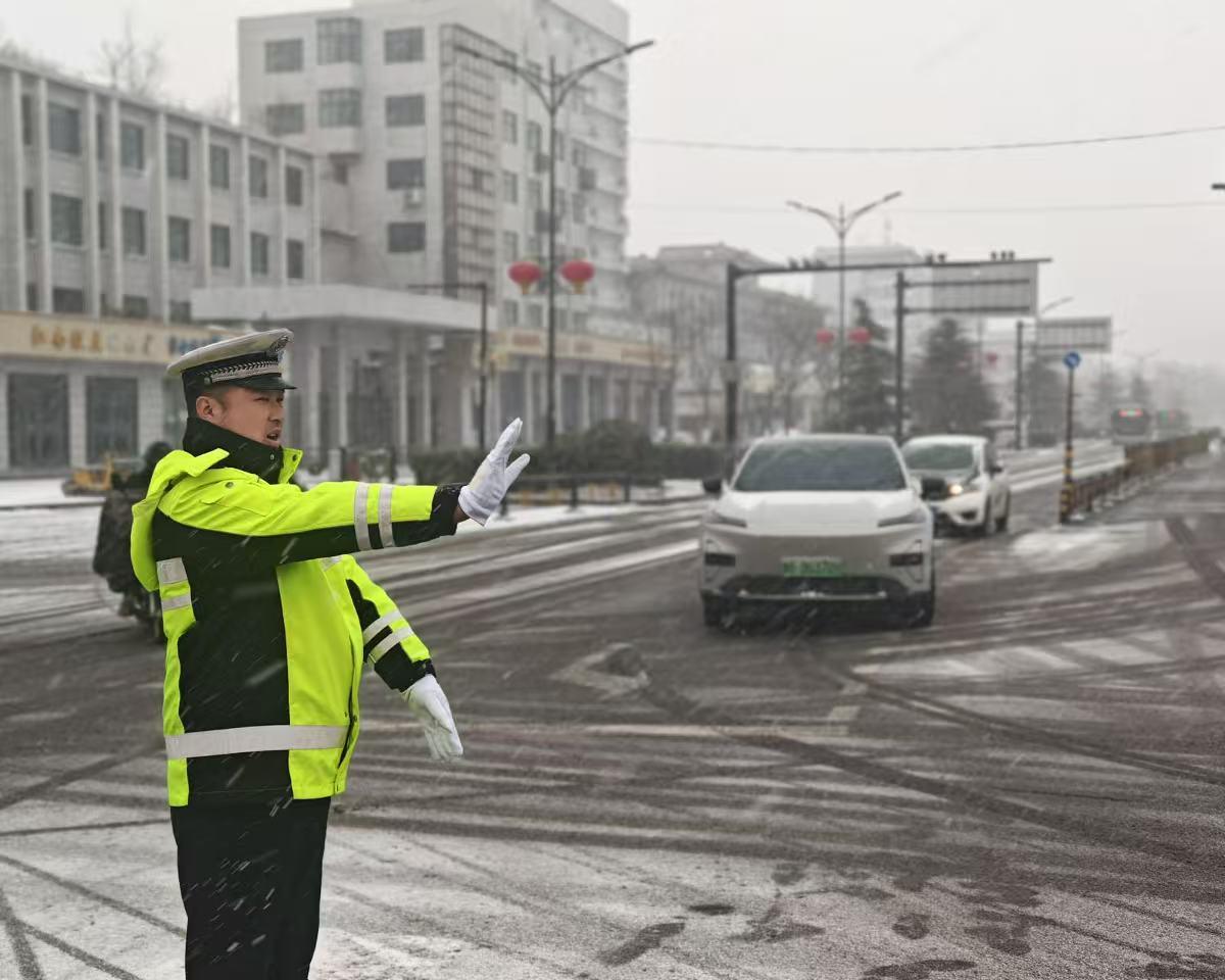 降雪伊始,市區(qū)各勤務(wù)大隊(duì)全體民警、輔警迅速進(jìn)入戰(zhàn)時(shí)狀態(tài),大隊(duì)領(lǐng)導(dǎo)帶頭沖鋒,分赴轄區(qū)各主要路口、路段指揮調(diào)度。開封交警采取“定點(diǎn)值守+動(dòng)態(tài)巡邏”相結(jié)合的勤務(wù)模式,加大巡查頻次和密度,實(shí)時(shí)掌握路面狀況。針對降雪導(dǎo)致的車輛緩行,開封交警靈活調(diào)配警力,在關(guān)鍵節(jié)點(diǎn)加強(qiáng)指揮疏導(dǎo),實(shí)施遠(yuǎn)端分流,有效防止了長時(shí)間、大面積交通擁堵。風(fēng)雪中,民警們一遍遍提醒過往車輛謹(jǐn)慎駕駛,及時(shí)處置各類突發(fā)情況。雪花浸濕了衣衫,他們卻用不變的堅(jiān)守,在城區(qū)道路上筑起了一道堅(jiān)實(shí)的安全防線,守護(hù)著市民的平安出行。