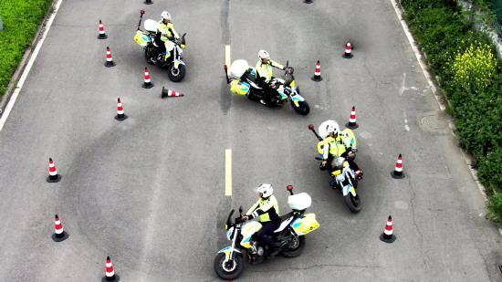 4月14日,安徽省渦陽縣公安局組織交警鐵騎隊員開展春季大練兵。圖為鐵騎隊員進行繞樁練習(xí)。 通訊員 吳勝利 攝