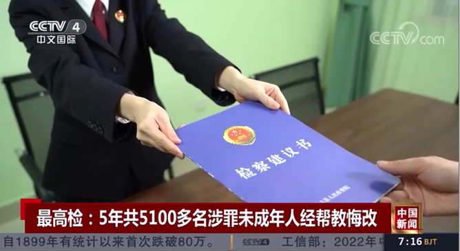 最高檢:5年共5100多名涉罪未成年人經(jīng)幫教悔改
