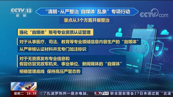 國家網(wǎng)信辦 強化“自媒體”賬號專業(yè)資質(zhì)認(rèn)證管理