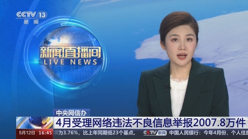 中央網(wǎng)信辦 4月受理網(wǎng)絡(luò)違法不良信息舉報(bào)2007.8萬(wàn)件