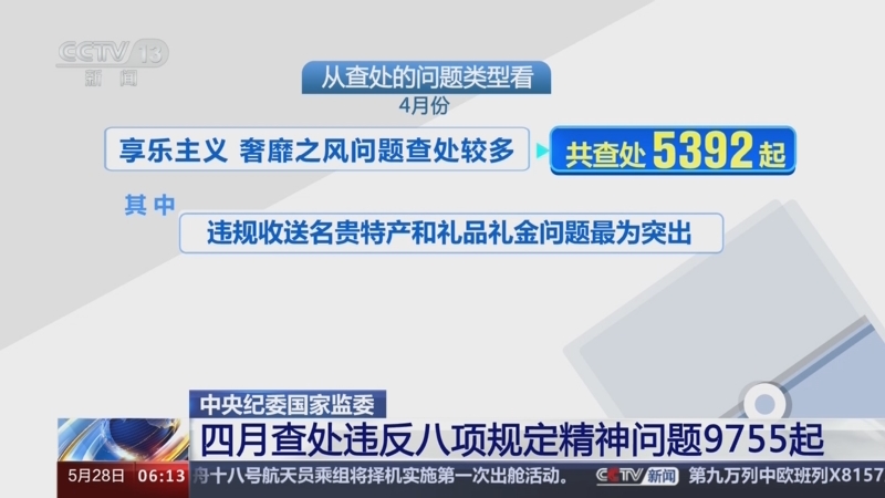 中央紀(jì)委國(guó)家監(jiān)委 四月查處違反八項(xiàng)規(guī)定精神問(wèn)題9755起