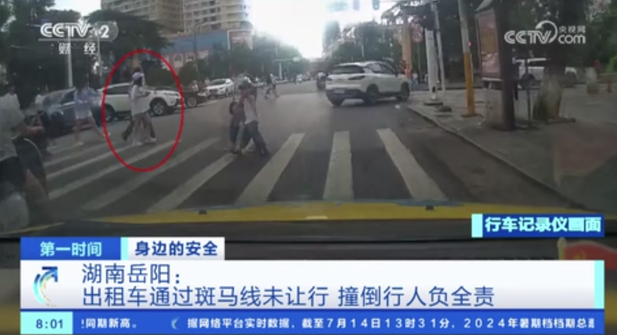 湖南岳陽:出租車通過斑馬線未讓行 撞倒行人負全責