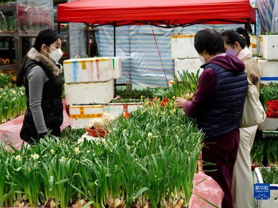 1月16日,在維多利亞公園年宵花市,顧客在選購(gòu)水仙。新華社記者 褚萌萌 攝