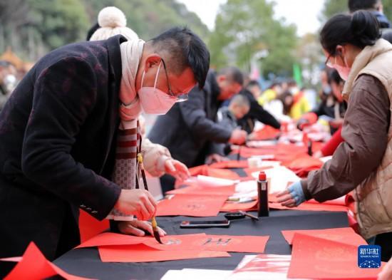 春節(jié)臨近,多地組織書法志愿者走進社區(qū)、工地等場所,為人們書寫春聯(lián)和福字,迎接春節(jié)的到來。