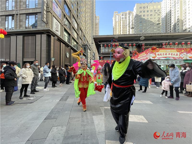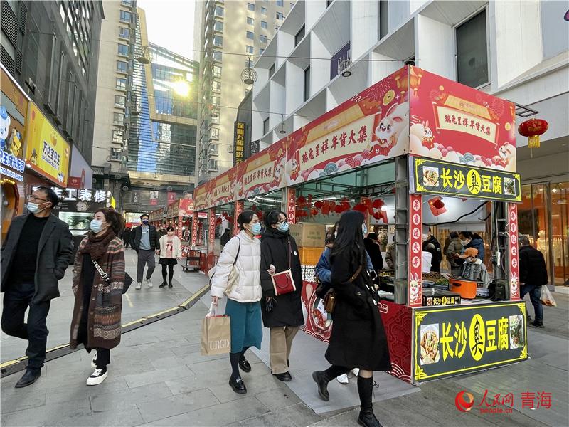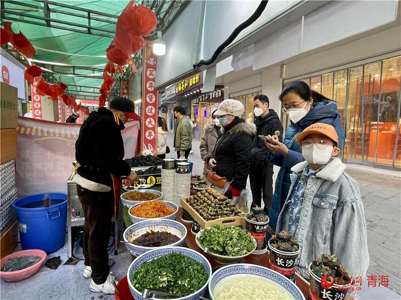 力盟商業(yè)步行街是西寧市繁華熱鬧的街區(qū)之一,瓜子糖果、春聯(lián)燈籠、海鮮肉類等年貨琳瑯滿目;糖葫蘆、臭豆腐、棉花糖等各色美食香氣撲鼻,市民聚集于此,體會濃濃年味,感受城市煙火氣。