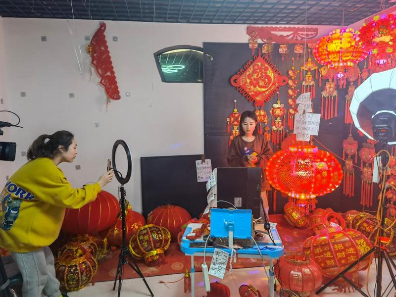 “如果買回去春節(jié)用的,可以看看3號鏈接,這款燈籠比較喜慶,適合家用……”在村內(nèi)一棟3層辦公樓中,7個(gè)直播間正在直播帶貨。負(fù)責(zé)人蘇云廣介紹,最近每天的營業(yè)額都超過了30萬元。