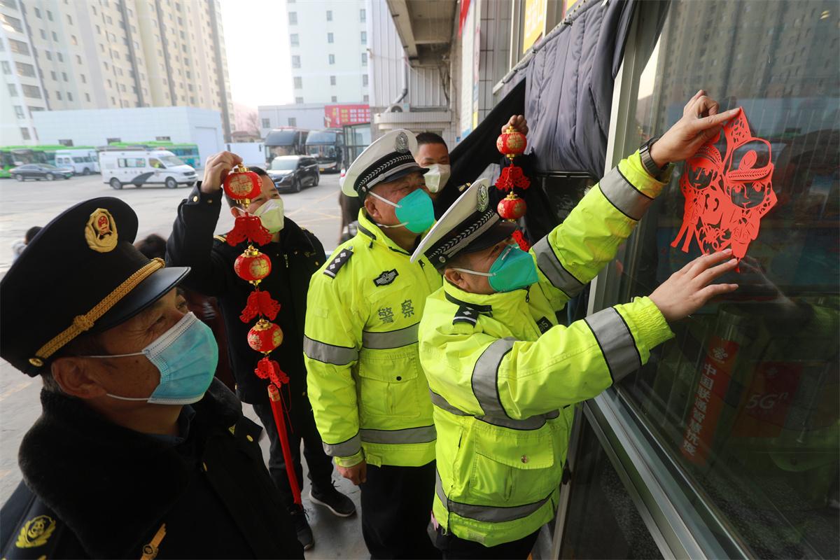 日前,陜西省渭南市澄城縣交警大隊(duì)聯(lián)合交通運(yùn)輸部門走進(jìn)轄區(qū)客運(yùn)公司,開展春運(yùn)道路交通安全檢查與宣傳活動。對駕駛員的駕駛資質(zhì)、隨車安全設(shè)施設(shè)備進(jìn)行了檢查,在承運(yùn)的車輛上全部粘貼“安全帶、禁止撥打手機(jī)”等交通安全提示貼。與往年不同的是,今年民警給運(yùn)輸企業(yè)候車大廳張貼了“ 溫暖回家路”的主題宣傳剪紙,通過群眾喜聞樂見的形式宣傳平安回家注意事項(xiàng)。