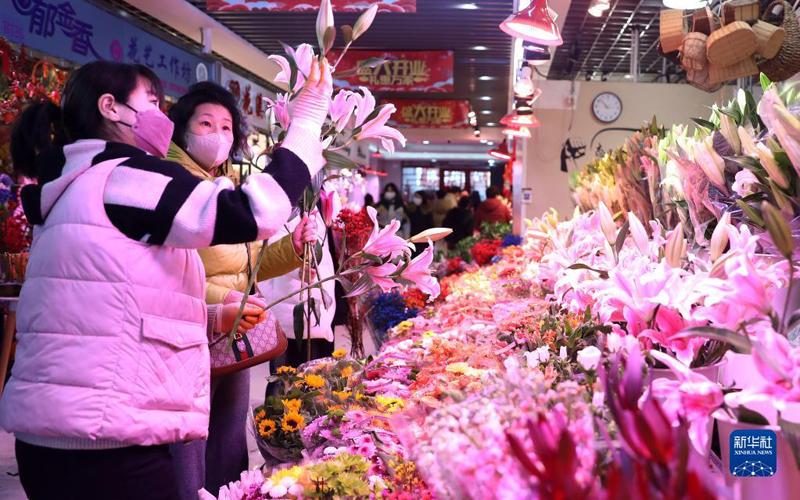 1月18日,市民在沈陽(yáng)北市場(chǎng)花卉大廳購(gòu)買(mǎi)鮮花。