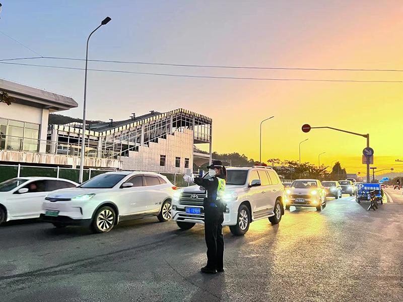 三亞交警在景區(qū)疏導(dǎo)車(chē)流