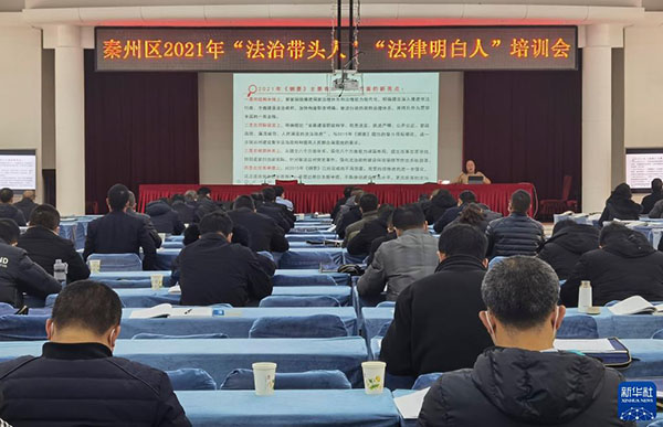 甘肅省天水市秦州區(qū)舉辦2021年“法律明白人”培訓會(12月8日攝)。新華社發(fā)