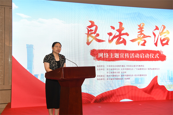 9月6日,由中央網(wǎng)信辦網(wǎng)絡(luò)傳播局、中央政法委宣傳教育局指導(dǎo),法治網(wǎng)及北京、浙江、廣東、陜西網(wǎng)信辦主辦,中國(guó)互聯(lián)網(wǎng)發(fā)展基金會(huì)中國(guó)正能量網(wǎng)絡(luò)傳播專項(xiàng)基金提供支持的“良法善治”網(wǎng)絡(luò)主題宣傳活動(dòng)在浙江杭州啟動(dòng)。圖為活動(dòng)現(xiàn)場(chǎng)。