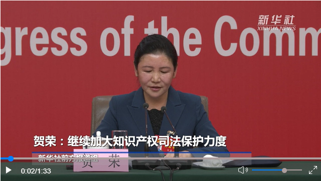 10月19日,中國共產(chǎn)黨第二十次全國代表大會(huì)新聞中心舉行記者招待會(huì)。中央政法委副秘書長訚柏,最高人民法院黨組副書記、分管日常工作的副院長、一級(jí)大法官賀榮,最高人民檢察院黨組副書記、分管日常工作的副檢察長、一級(jí)大檢察官童建明,公安部黨委委員、副部長、國家移民管理局黨組書記、局長許甘露,司法部黨組成員、副部長左力圍繞“堅(jiān)持以習(xí)近平法治思想為指引 努力建設(shè)更高水平的法治中國”主題與記者交流。賀榮表示,繼續(xù)加大知識(shí)產(chǎn)權(quán)司法保護(hù)力度,為實(shí)現(xiàn)高水平科技自立自強(qiáng)提供有力司法服務(wù)。