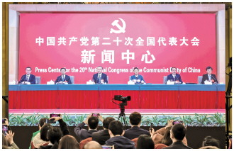 10月19日,黨的二十大新聞中心舉行記者招待會(huì)。圖為本報(bào)記者提問(wèn)。 本報(bào)記者 王建軍 攝