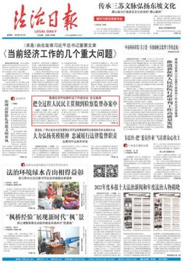 本報訊 記者張昊 黨的二十大報告專章部署“發(fā)展全過程人民民主,保障人民當家作主”,特別要求“完善辦事公開制度”。2月15日,最高人民檢察院召開檢察聽證工作座談會,就加強和改進檢察聽證工作向檢察聽證員代表問需求計。最高檢黨組書記、檢察長張軍出席會議,圍繞檢察機關深入貫徹黨的二十大精神,全面貫徹習近平法治思想,踐行全過程人民民主,進一步做好檢察聽證工作提出明確要求。