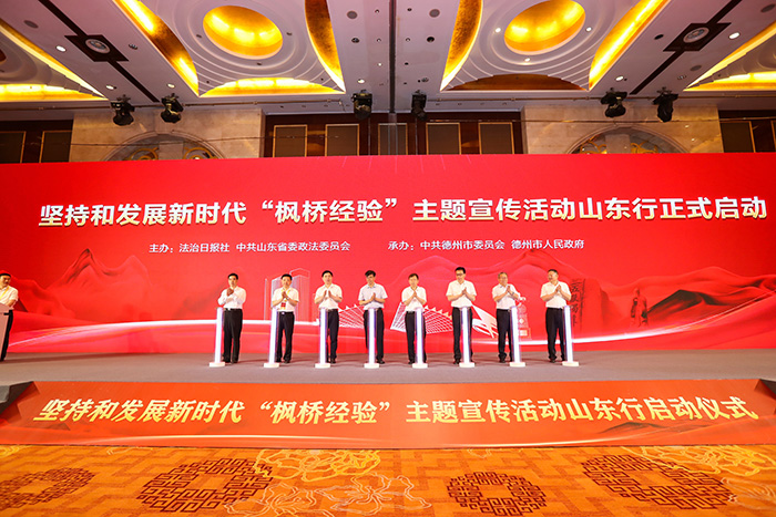 6月20日上午,堅(jiān)持和發(fā)展新時(shí)代“楓橋經(jīng)驗(yàn)”主題宣傳活動(dòng)山東行正式啟動(dòng)。圖為活動(dòng)現(xiàn)場(chǎng)。(方芳 攝)