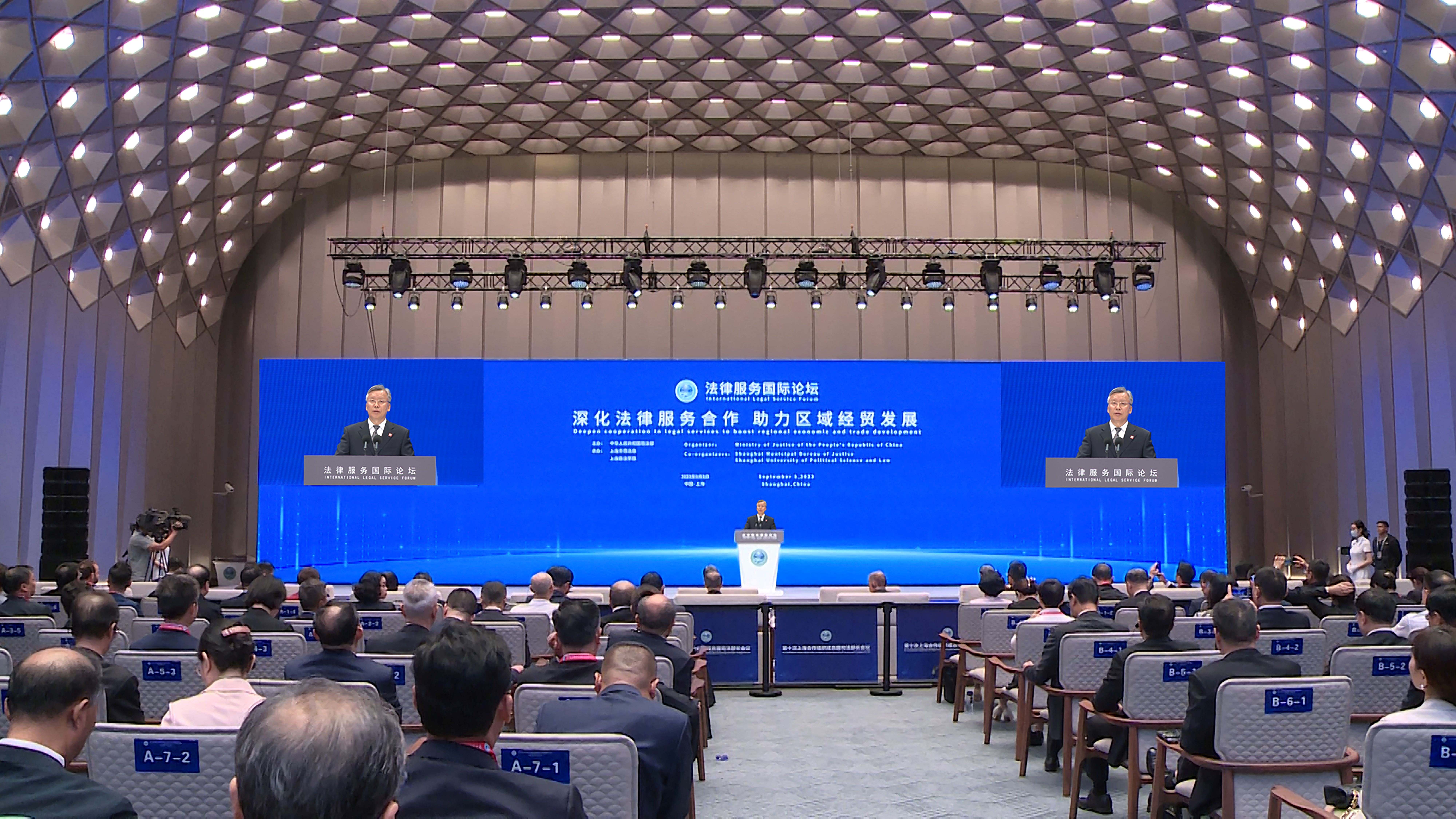 9月5日上午,司法部副部長(zhǎng)王振江出席法律服務(wù)國(guó)際論壇并致辭。攝影 李光印