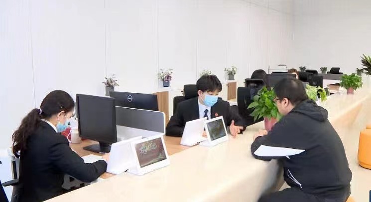 圖為中國(guó)(江蘇)自由貿(mào)易試驗(yàn)區(qū)蘇州片區(qū)法律服務(wù)中心工作人員在接受咨詢。