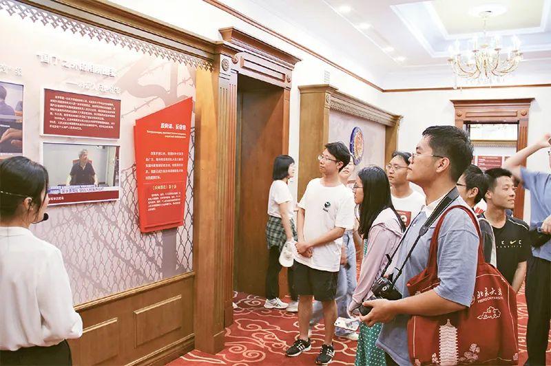 綏芬河國家安全教育展館面積約1100平方米,由序廳、總體國家安全觀、無名豐碑、周恩來展區(qū)等8個(gè)部分組成,展示了總體國家安全觀、黨的隱蔽戰(zhàn)線光輝歷史、當(dāng)前斗爭形勢等內(nèi)容。李大釗、周恩來等老一輩革命家在綏芬河出入境蘇聯(lián)時(shí)曾秘密下榻于此。作為早期紅色秘密國際通道、秘密交通線掩護(hù)站點(diǎn),展館建筑如今成為珍貴的紅色革命歷史遺址。圖為2023年8月15日,大學(xué)生在展館內(nèi)參觀學(xué)習(xí)。國安宣工作室供圖