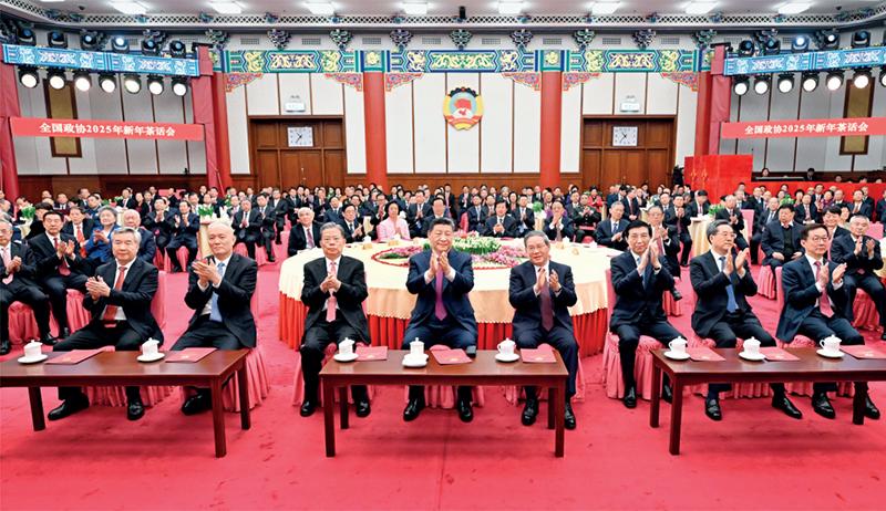 2024年12月31日,全國政協(xié)在北京舉行新年茶話會(huì)。黨和國家領(lǐng)導(dǎo)人習(xí)近平、李強(qiáng)、趙樂際、王滬寧、蔡奇、丁薛祥、李希、韓正出席茶話會(huì)并觀看演出。 新華社記者 謝環(huán)馳/攝