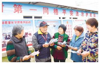 圖為江蘇省啟東市海復(fù)鎮(zhèn)廟基村“法律明白人”倪伯蒼(左二)向群眾普及法律知識。