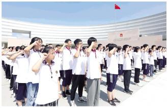 圖為江蘇省南京市第一中學(xué)2023級高一新生在南京憲法公園參加“禮敬憲法·法潤青春”活動。