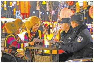 圖為青海省海東市互助土族自治縣公安局東和派出所民警近日在油嘴灣景區(qū)開(kāi)展普法宣傳。 費(fèi)照林 攝