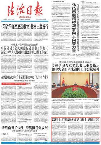 本報(bào)北京11月27日訊 記者蔡長(zhǎng)春 今年12月4日是第十二個(gè)國家憲法日。日前,中央宣傳部、司法部、全國普法辦聯(lián)合印發(fā)通知,以“學(xué)習(xí)宣傳貫徹習(xí)近平法治思想,推動(dòng)憲法深入人心”為主題,在全國組織開展2025年“憲法宣傳周”活動(dòng)。