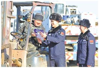 圖為遼寧出入境邊防檢查總站丹東邊境管理支隊(duì)新興邊境派出所民警近日深入轄區(qū)碼頭,一邊對(duì)上塢船只進(jìn)行登記檢查,一邊宣傳邊境法規(guī)政策與防范電信網(wǎng)絡(luò)詐騙知識(shí)。 鞠鑫 攝