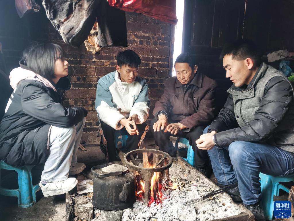 貴州省望謨縣實(shí)驗(yàn)高中黨總支副書(shū)記、副校長(zhǎng)劉秀祥(右一)在學(xué)生家中家訪(fǎng)(2022年2月1日攝)。新華社發(fā)