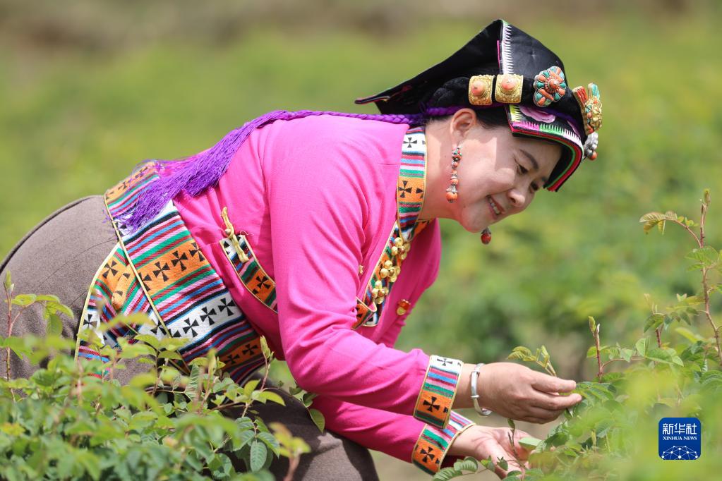 9月25日,陳望慧在四川阿壩州小金縣新橋鄉(xiāng)共和村的玫瑰園中查看玫瑰長(zhǎng)勢(shì)。新華社記者 劉瓊 攝