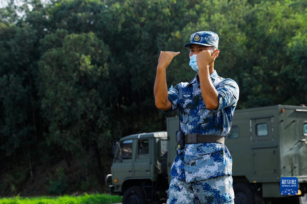 駐香港部隊某團(tuán)防空營營長王海旭在防空陣地上指揮戰(zhàn)斗裝備進(jìn)入預(yù)定區(qū)域(2020年8月13日攝)。新華社發(fā)(田越洋 攝)