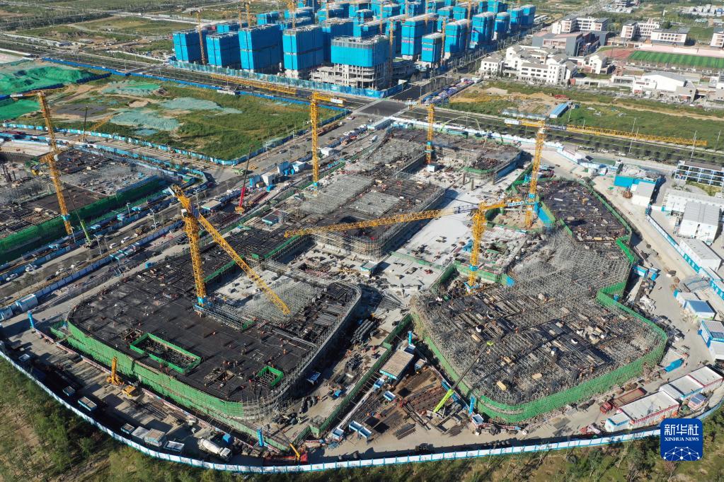 位于雄安新區(qū)啟動(dòng)區(qū)的中國星網(wǎng)雄安新區(qū)總部大樓建設(shè)施工現(xiàn)場(2022年9月7日攝,無人機(jī)照片)。新華社記者 朱旭東 攝
