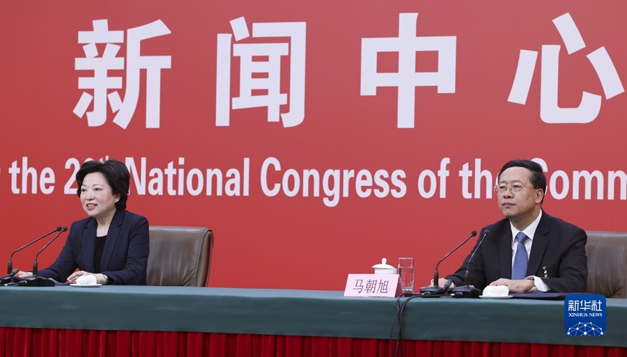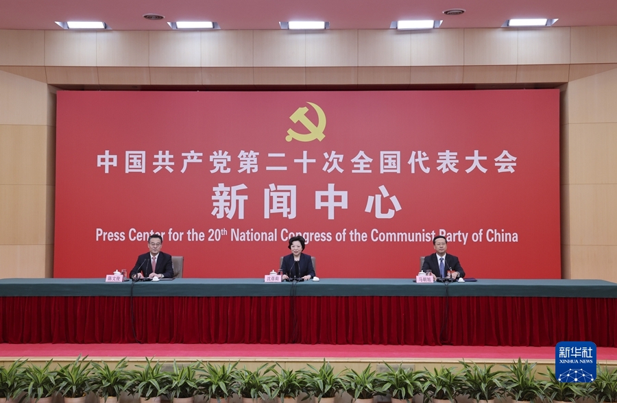 10月20日,中國共產(chǎn)黨第二十次全國代表大會(huì)新聞中心舉行記者招待會(huì)。中央對(duì)外聯(lián)絡(luò)部副部長沈蓓莉,外交部黨委委員、副部長馬朝旭圍繞“習(xí)近平外交思想指引中國特色大國外交開拓前行”主題與記者交流。 新華社記者 張玉薇 攝