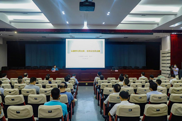 為切實(shí)履行推進(jìn)法治建設(shè)第一責(zé)任人職責(zé),深入學(xué)習(xí)領(lǐng)會民法典的新規(guī)定新精神,強(qiáng)化法治思維,提升依法治區(qū)的能力和水平,7月23日,廣東省深圳市鹽田區(qū)召開區(qū)委理論學(xué)習(xí)中心組(擴(kuò)大)學(xué)習(xí)會,區(qū)委常委、宣傳部部長董秀主持會議。廣東省高級人民法院副院長譚玲作《認(rèn)真學(xué)習(xí)民法典,準(zhǔn)確實(shí)施民法典》專題講座。全區(qū)各單位副處級以上干部參與本次學(xué)習(xí)。